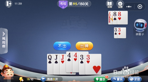 此时对方会出一对8,我们再出一对J,对方要不起。