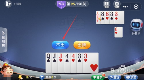 接着对方会出红桃6,此时我们选择【不出】。