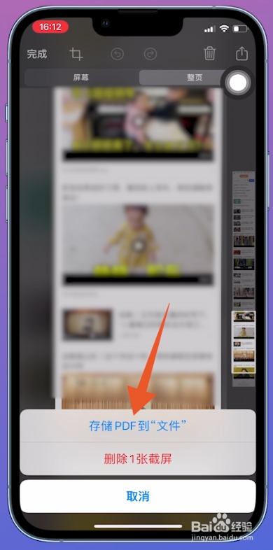在弹出来的选项窗口内里, 选择【存储pdf到文件】这个选项并点击。