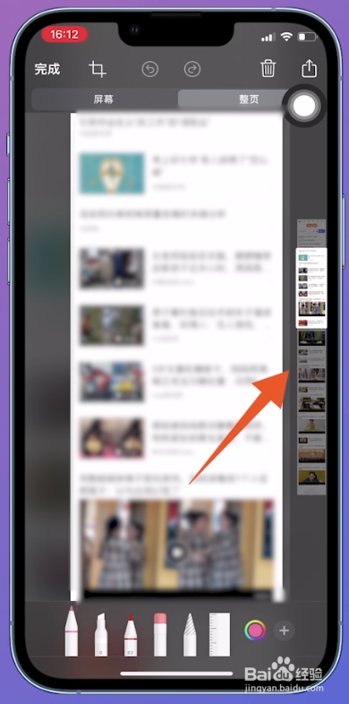 切换到新的页面之后,滑动屏幕右侧位置的【滑块】,拔取本身需要长截屏的【内容】。