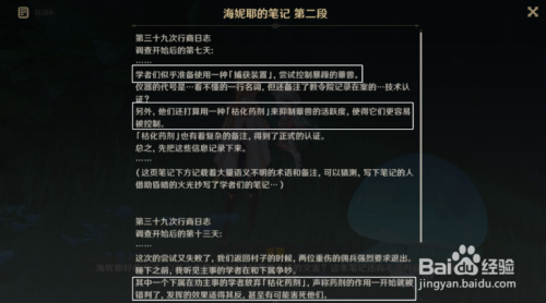 与海妮耶对话,得到海妮耶的条记·第一段。