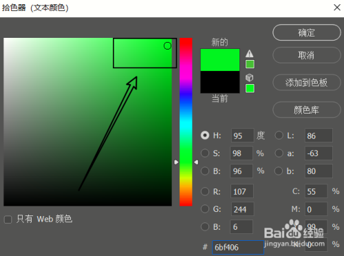 打开拾色器后,在色板中拾取颜色。