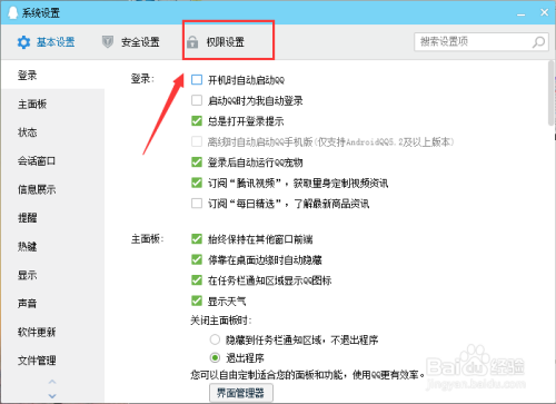 继续在打开的选项栏畜材趴中,选择-权限设置,如图所示