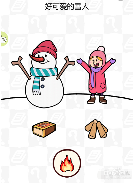 谜底:把雪人的鼻子拿给小孩,小孩生气冒火,再把火放在干柴上(右图)。