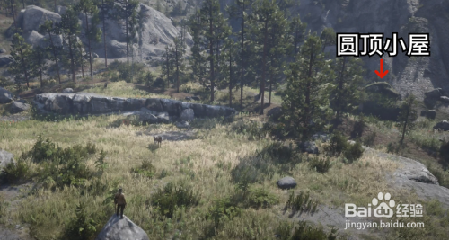 之后我们来到区域4图中黄圈位置刷新阿帕卢萨马的几率很高,前面没驯服到的小伙伴可以来这里驯服,红圈位置就是美国花马的刷新点,在如图所示的圆顶小屋旁的小平台上固定刷新美国花马,找到后我们将其驯服。