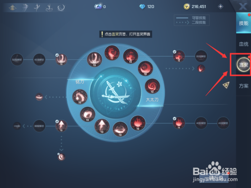 界面切换,在右侧栏找到第3个言灵图标,点击它。