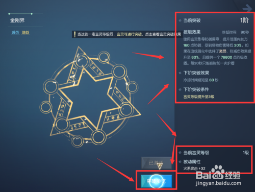 查看右侧界面里的技术效果以及下级冲破的效果,包括底部当前的言灵等级以及进犯系数。
