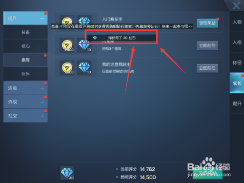 体系会跳出提醒得到的奖励。