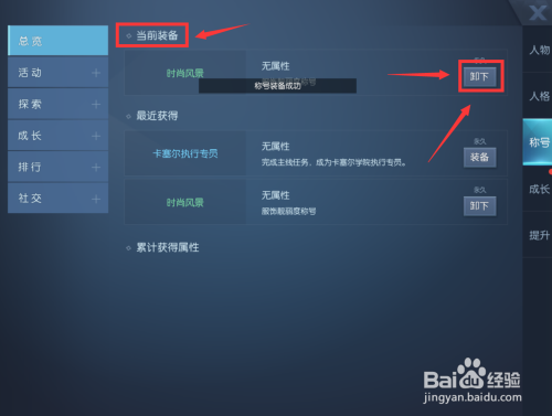 在当前装备里,点击右侧的卸下,即可卸下称呼。