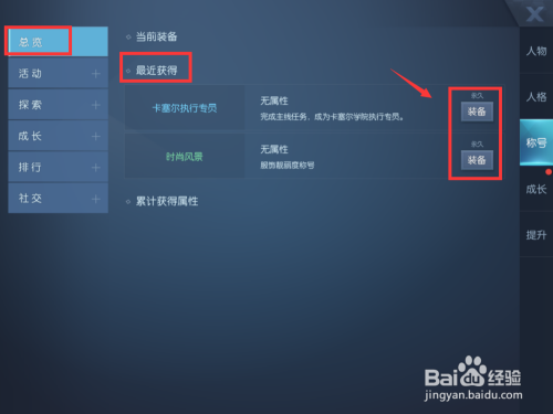 总览界面内里,查看比来得到称呼,点击右侧的装备,即可举行装备称呼。