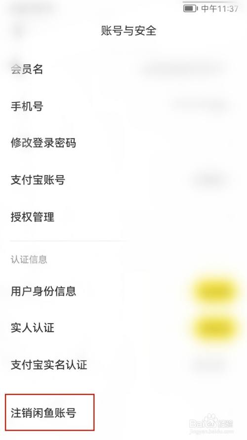 打开账号与安全的界面点击刊出闲鱼账号选项;