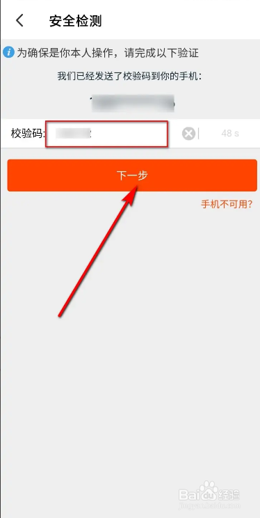 第六步,在方框中输入验证码,再点击“下一步”。