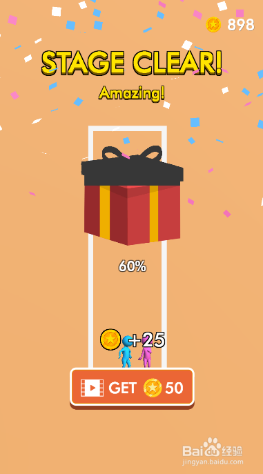 蓝色人与粉色人顺遂聚在一路,弹出通关动画,如图。这样就过关了。