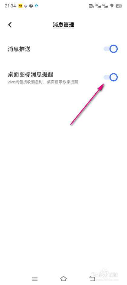 在动静推送处,点击右侧白色按钮。