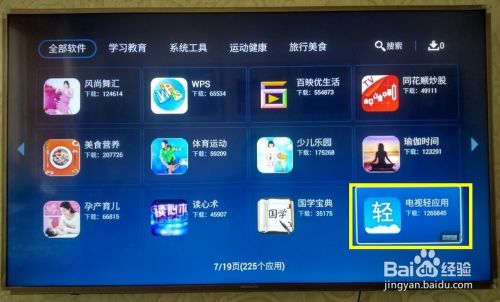 在“全数软件”界面中,标的目的右翻页找到“电视轻应用”应用并选中,点击“确定”按钮即可进入安装界面。