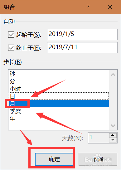 跳出提醒框,在步长内选择月,点击下方确定图标。