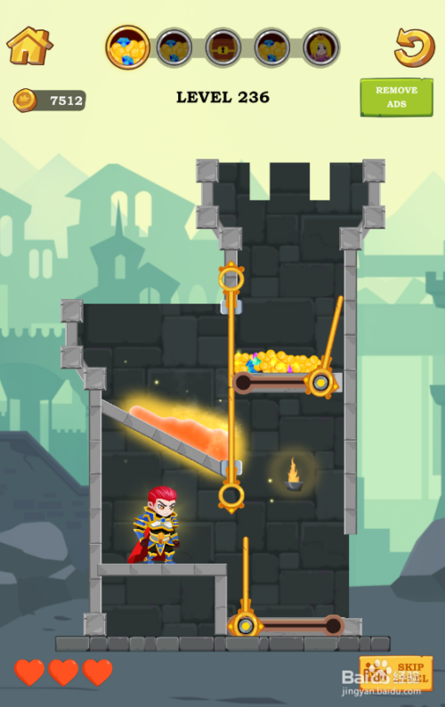 工具/原料一加10 Pro安卓Android 13Little Heroes Rescue1.1.6方法/步骤1这个关卡的使命是得到宝藏,熔岩在小英雄上侧,环境如图。 2点击滑动底部的推拉杆,如图。 3点击拔失熔岩右侧的竖插销,如图。 4点击滑动熔岩左侧的推拉杆,如图。 5点击拔失扯喝宝藏左侧的竖插销,如图。 岔贪距6点击滑动宝藏右侧的推拉杆,如图。小英雄乐成获得宝藏栗常,这样就过关了。 END
