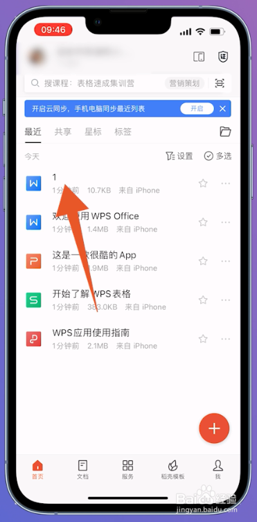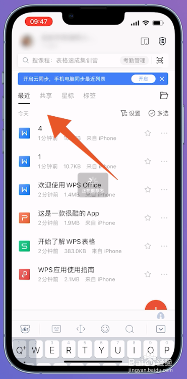 打开WPS的页面之后,选中需要更改的文件左滑。