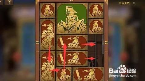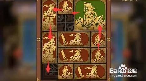 第七步:下半部门的方块顺时针移动,让将军走出盒子,如图所示。