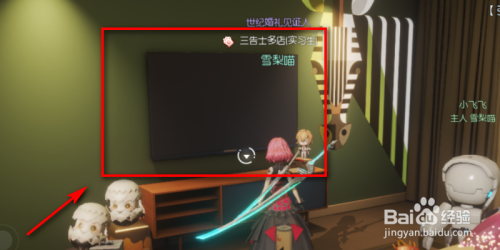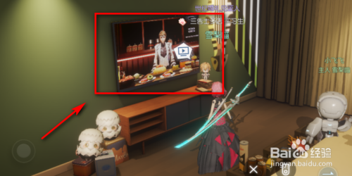 进入小龙的温馨卧室,细心不雅察界面,点击电视机前面的三角形图标。