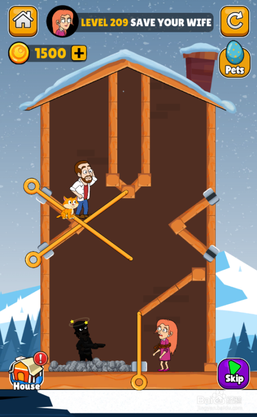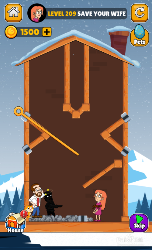 这一关的使命是营救中年大叔的老婆,中年大叔站在左侧顶部,环境如图。