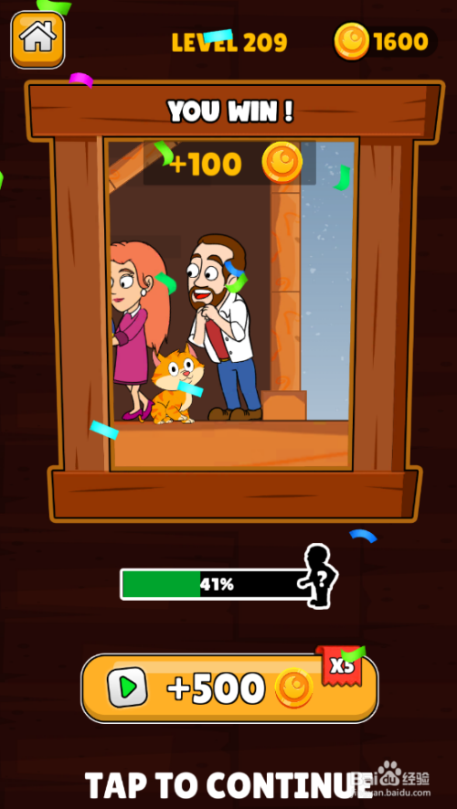 中年大叔的老婆乐成获救,弹出YOU WIN画面,如图。这样就过关了。