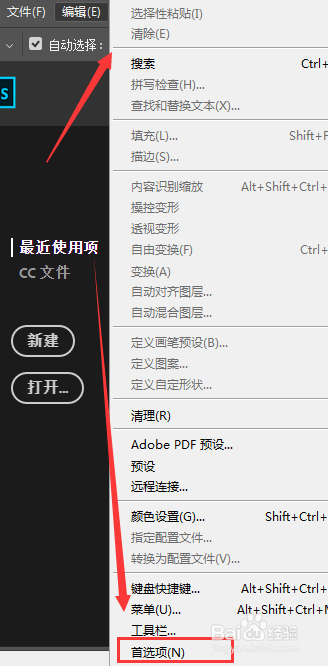 如图,打开ps中的编纂菜单