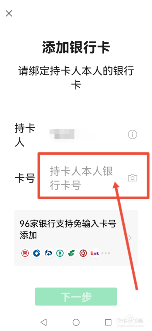 输入卡号,也可以照相上传,主动辨认卡号,点击下一步