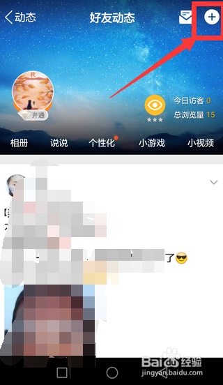 在动态栏中后,点击右上角的加号位置,点击打开