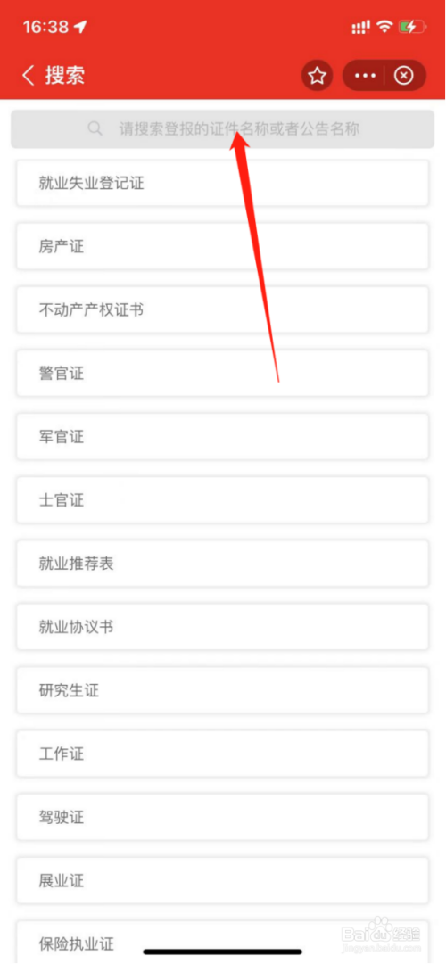 第六步:然后在登报声明类型中寻找本身需要管理证书遗掉登报声明的证件名称,方便我们参照模板编纂本身证书遗掉登报声明的内容。