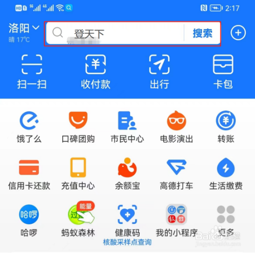 第二步:进入【支付宝】APP后在支付宝顶部的搜刮位置内里输入:【登全国】,搜刮我们管理证书遗掉登报声明要用到的小程序。