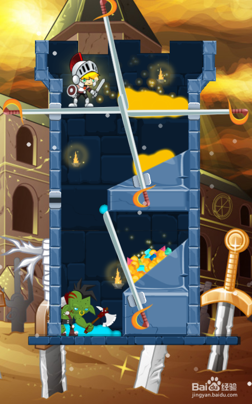 这一关的使命是得到宝藏,少年站在左侧顶部,仇敌站在左侧底部,环境如图。