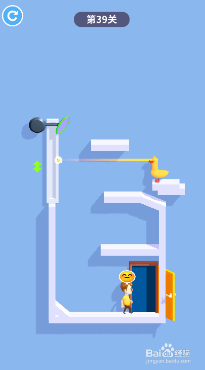 这一关少年在豹子右侧,激光鸭在少年上侧,安全出口在右侧底部,环境如图。