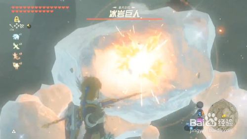 击杀冰岩巨人 需要先用火属性兵器 例如火箭 进犯一下巨人 可以让身上的冰壳化失 再爬上头顶击杀即可