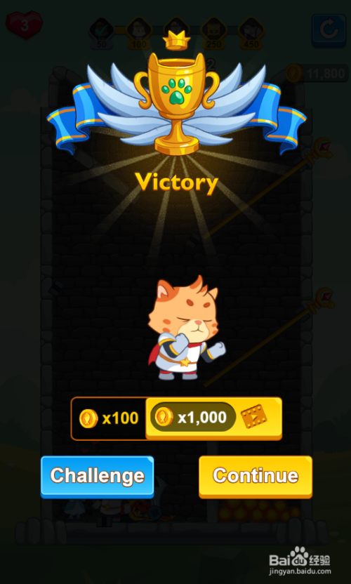 白猫顺遂获救,弹出大奖杯动画,如图。这样就过关了。