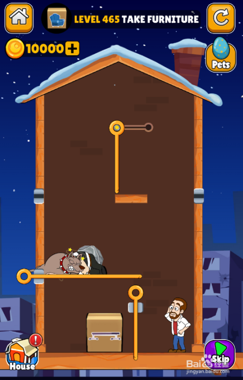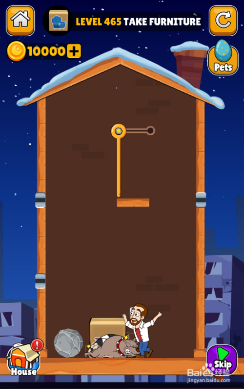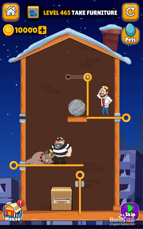 这一关的使命是获得家具,匪徒站在家具上侧,男子站在巨石右侧,环境如图。