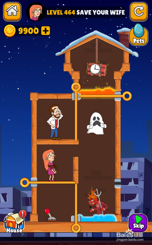 这一关的使命是营救老婆,男子站在鬼魂左侧,环境如图。