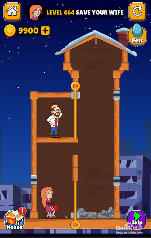 老婆顺遂获救,弹出YOU WIN画面,得到100金币,如图。这样就过关了。