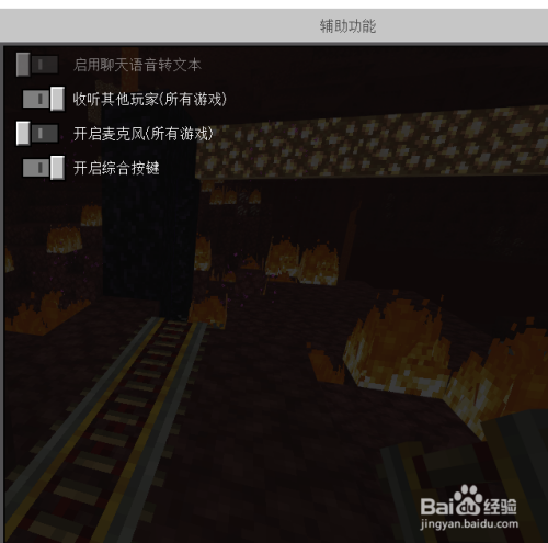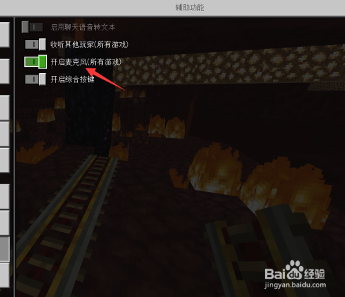 工具/原料游戏:我的世界版本:基岩版本操作设备:电脑设备体系:win10方法/步骤1首先,进入我的世界。点击esc,呈现下图界面。2点击设置选项。3点击设置之后,进入设置界面,看左方选项。4点击辅助功效。5找到开启麦克风选项。6点击开启按钮就可以了。END
