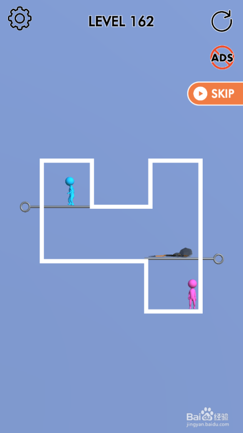 这个关卡的小蓝人站在山君上侧,小粉人站在毒蜘蛛下侧,环境如图。
