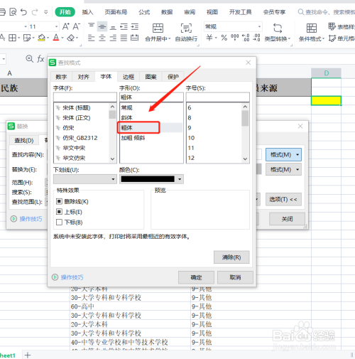 查看查找格局页面,选择【字形】模块,点击【加粗】选项。
