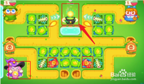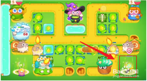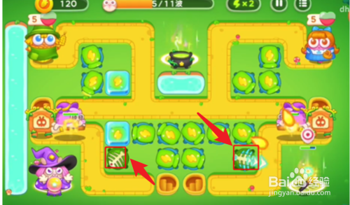 像这样清算失四周的道具,继续继续增长瓶子,前几波是先不消管这个boss的,清算道具,然后放置炮台就行。