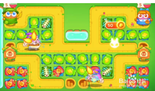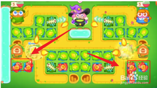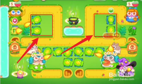 首先我们在中心放置瓶子炮,实时清算失四周的道具,然后继续放瓶子炮,瓶子炮危险很高,这关就靠他来了。