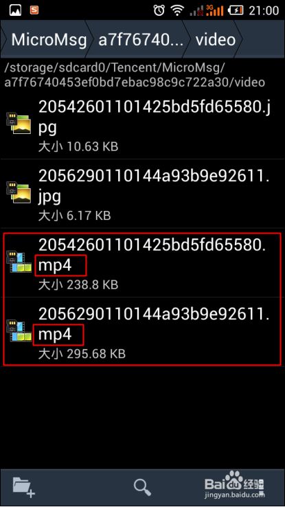 进入“ video ”文件夹后找到MP4格局的文件就是您生存的、和洽友发来的微信小视频了。