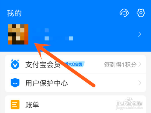 在支付宝我页,拜候头像。