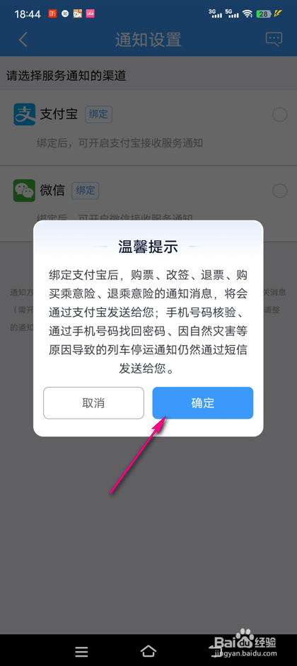 在支付宝处,点击右侧按钮。