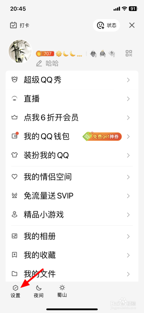 在菜单界面,点击设置。