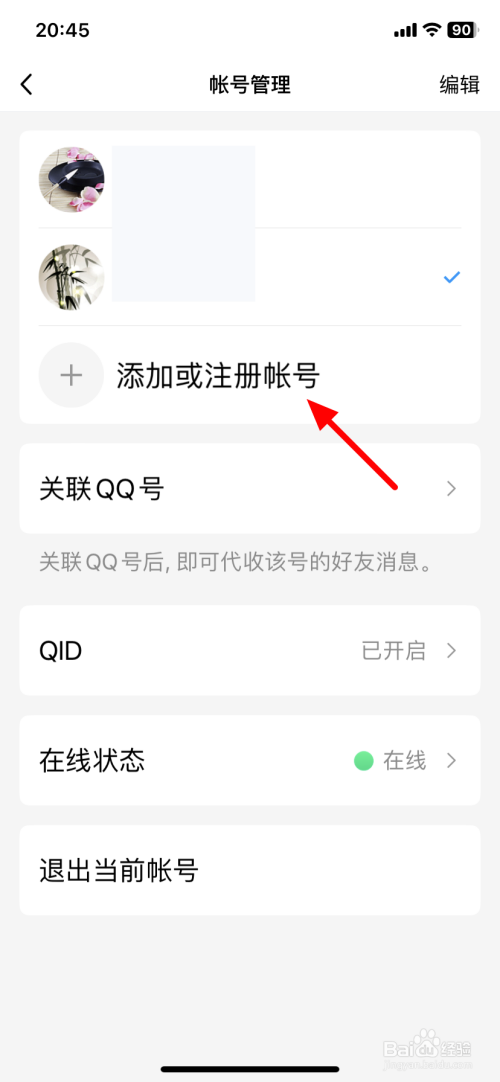 进入后,点击添加或注册帐号。