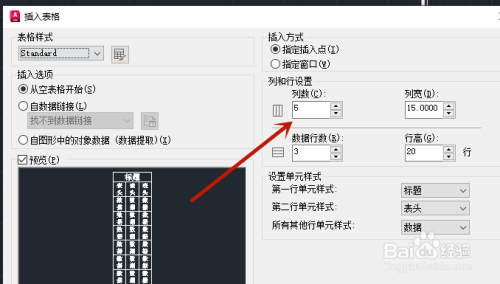 插入表格,设置想要的列数和行数