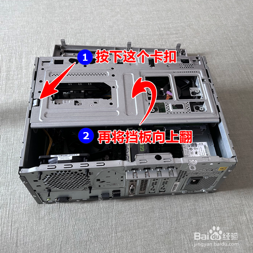 按下挡板的卡扣,将挡板标的目的上翻起。